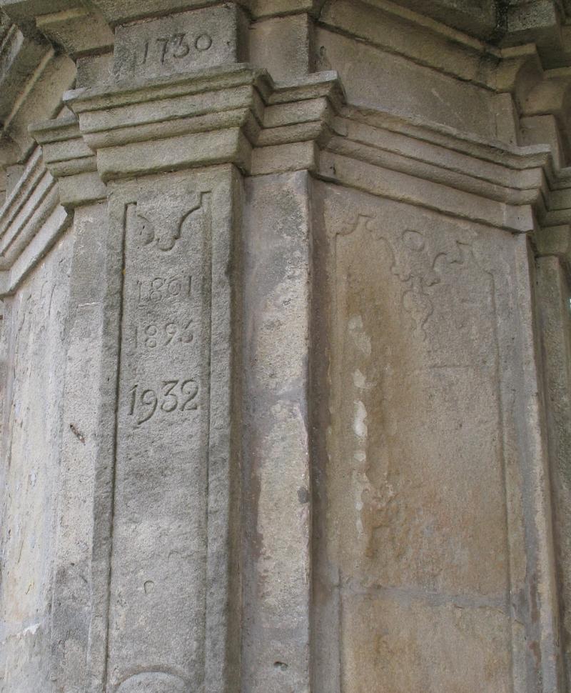 Le date della costruzione e degli spostamenti sono scolpite sul frontale della fontana.